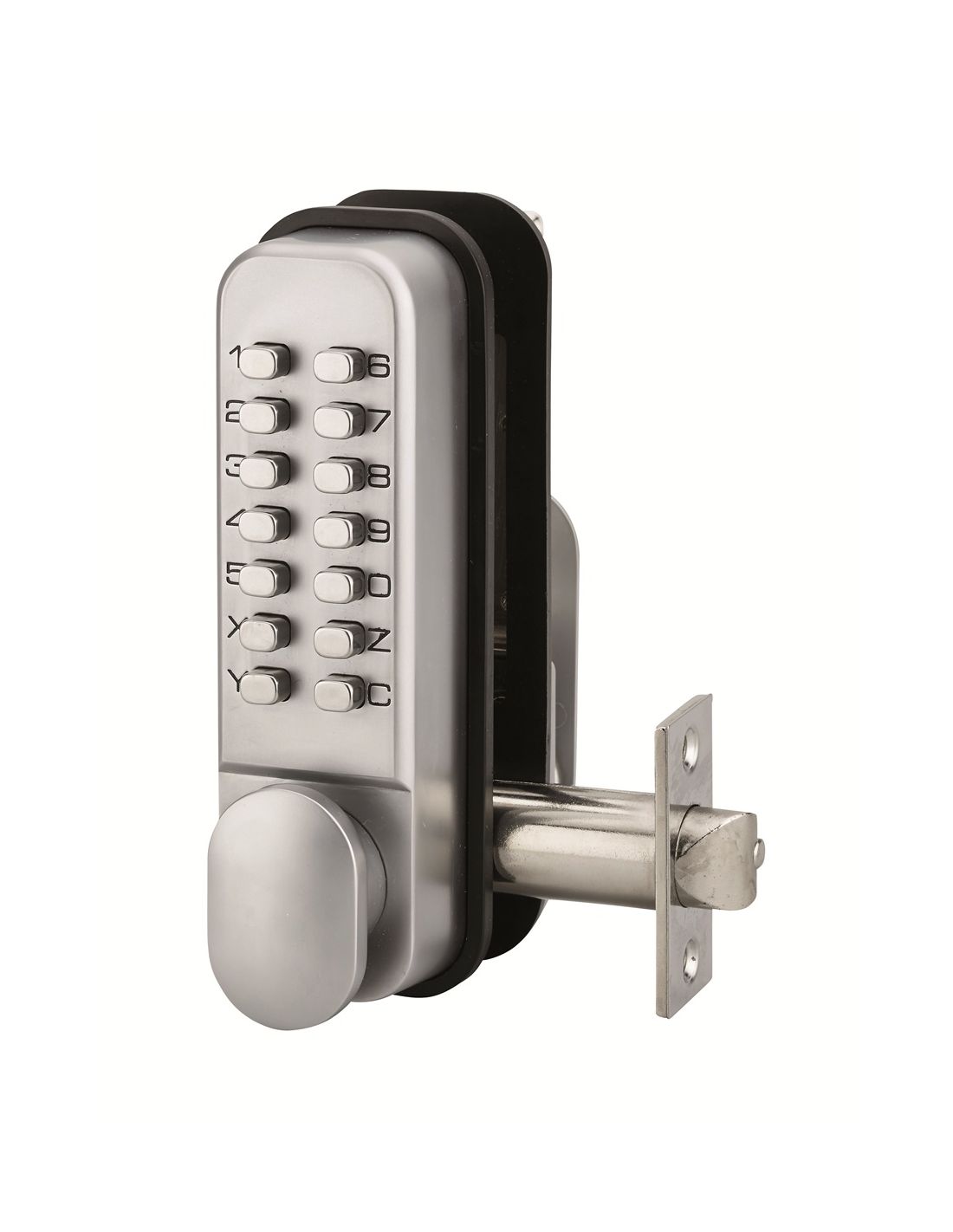 Corp din aliaj turnat. Mecanism cu combinație modificabilă de la 2 la 8 cifre sau litere. 8.000 de combinații posibile. Modificare rapidă a combinației. Cu mâner dublu. Reversibil dreapta/stânga. Pentru uși cu grosimea de 32 până la maxim 55 mm.