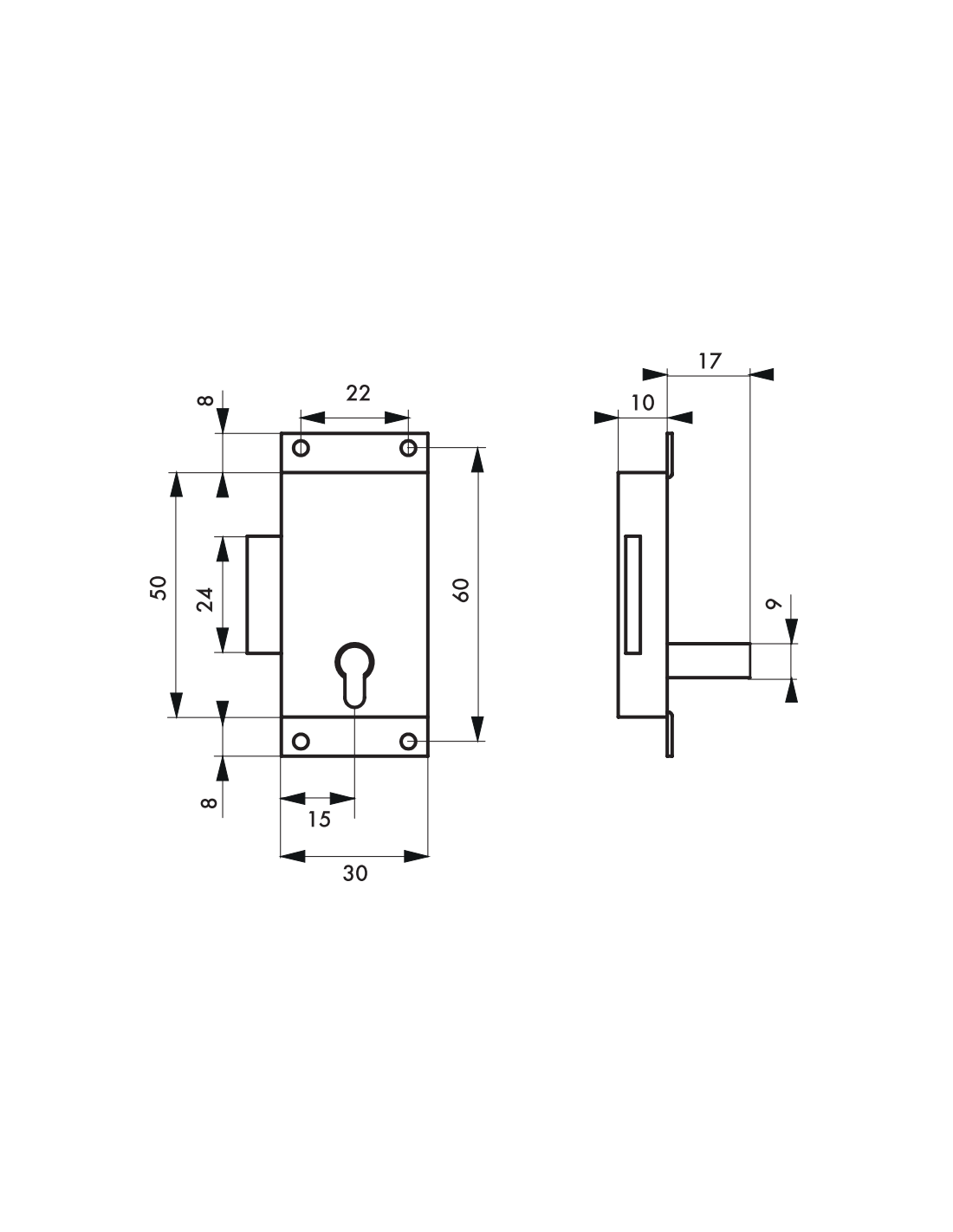 Incuietoare pentru mobilier, pentru usi de mobilier, ax 15mm, 30x50mm, alama, 1 cheie - 2